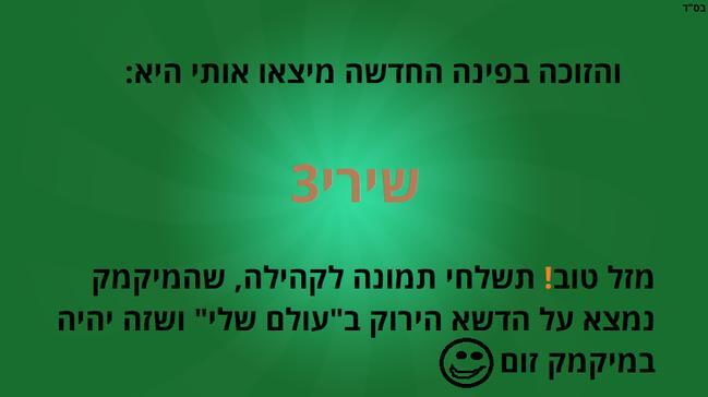 הזוכה בפינה החדשה מצאו אותי!