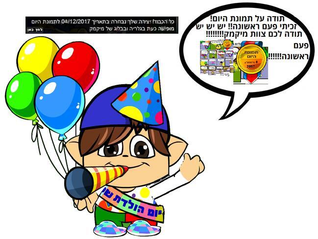 היי לכולם!! אז אני נכנס למיקמק ביום חמישי ופתאום...(מוזיקת מתח) קופצת לי הודעה שזכיתי בתמונת היום ואז הייתי המום איזה חמש שניות וחשבתי רגע זה המיקמק שלי?? אני זכיתי?? ויום למחרת הבנתי ש... כן!!!!!!!!!!! זכיתי בתמונת היום!!!!!!!! פעם ראשונה שאני זוכה!!!! ואני ממש מקווה לזכות בתחרות, כאילו אם זכיתי בתמונת היום אז אזכה גם בתחרות לא? חח (מקווה שכן) טוב אז ממש תודה על תמונת היום! אשמח אם תיתנו לייק ותגובה תדפדפו 2 יצירות מכאן (כולל זה) ותגיעו לקומיקס(: אגב מקווה שאהבתם את העיצוב אני מנסה להכניס לאבן היסוד קצת אנימציה נראה אם יצליח לי(; חח טוב ביי