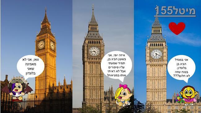 המיקמקית שלי נמצאת בשעון הביג בן בלונדון , מבלה את חופשתה בצילומים של השעון בכל השעות ( איך המגדל נראה בבוקר ,בצהרים , בערב ובליליה ),