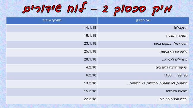 ייאיי מחכה לזה!!! יופי של התחשבות בקשת לשישי שבת :) |
