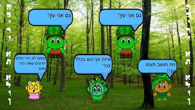 הכירו את אלון, עץ ממש רגיל. כלומר, לא. הוא צבר. (קקטוס) הצבר מאפיין את הישראלים (אנחנו) למה? כי אנחנו מבחוץ קוצניים אבל מבפנים רכים. תראו את הסיטואציה למעלה. השקדייה משוויצה בפניו ושאר העצים צוחקים עליו. היי, שמתם לב, שכולנו נקלעים לסיטואציות כאלה? ואנחנו מרגישים לא נעים? אז נגיד שלעצים יש עיניים והם רואים הכל, למשל כמה הם "עלובים" כי לא מטפלים בהם כמו שצריך, או גם כמה האחרים מושלמים ויפים ומטופחים... אז לכבוד ט"ו בשבט, אנחנו בשנה חדשה מטפלים בעצים ובצמחים יותר טוב! כולנו שמים יד במעגל הזה! אני ממש אבקש מכם שתעזרו לנו לעשות את הסביבה נקייה יותר ויפה יותר!! (אני מקווה מאוד שקראתם את זה ושתגיבו (: זה יתרום לכולנו)