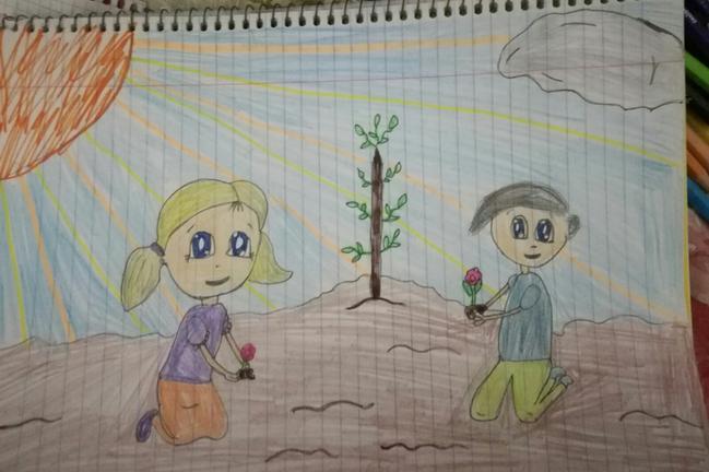 ובה רואים אותי ואת אח שלי שותלים צמחים ושמחים לקראת חג טו בשבט .