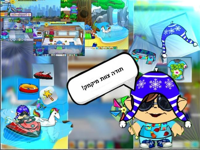 תודה צוות מיקמק על הכל!: תודה על הזכייה במיקשימה החודשית! תודה על הזכייה בתחרות "ירוק בעינים", שזכיתי באופנוע ים,קסם נסיעה למיקרביים,בית אקווריום, צעיף פרחים\לימונים... ובית בצורת שדה תעופה! בקיצור שווה! במיקשימה החודשית זכיתי בשדרוג החודש!!! בובה גדולה,קטנה ופלסטיק..... תודה צוות מיקמק!!