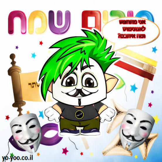 תחפשות!!!! זה הדבר האהוב עלי ביותר בפורים ומה איתכם? השנה אני מתחפש להאקר מארגון ההאקרים הגדול בעולם ששמו אנונימוס,בתמונה אפשר לראות אותי עם שני הדברים המאפיינים את ההאקרים הללו: 1-המסכה הידועה 2-כפפות לבנות מקווה שאהבתם שלכם -+-פונד2015-+- נ.ב.-מה התחפושת האהנובה עליכם ולמה אתם תתחפשו?