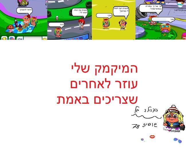 למשימה החודשית המיקמק שלי עוזר למיקמקים אחרים: אז היה מישהו שטייל לו ובמקרה הייתי שם והוא ביקש ממני עזרה אז חשבתי ואמרתי לעצמי "היי שושית, יש לך כאן אוצר! אולי תשתמשי בזה!" אז צילמתי. אחר כך פגשתי את מסט (מסטיקים55) ועשינו פיקניק בפארק ואז באה אלינו מישהי ושאלה אם אפשר להצתרף אז שוב חשבתי אותו דבר! ככה את כל מה שיש בתמונה. אחר כך פשוט כבר לא ביקשו ממני =)