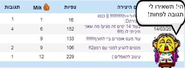 אני לגמרי מבינה אותך גם לי היתה תקופה שהייתי מעלה ואף אחד לא היה מגיב לי:(