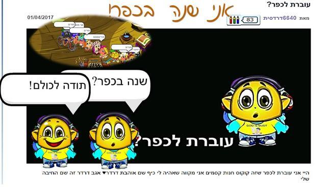 אז באחת באפריל הצטרפתי לכפר! ועברתי הרבה דברים עם החברים שלי שהיו לצידי בכפר כמו: כיף,אקשנים,צחוקים ואפילו קצת ריבים והרגשתי במהלך השנה שהכפר הוא הבית שלי! אני מקדישה לחברים שהיו איתי במשך השנה הזאת אני מצטערת שלא הקדשתי לכולם.