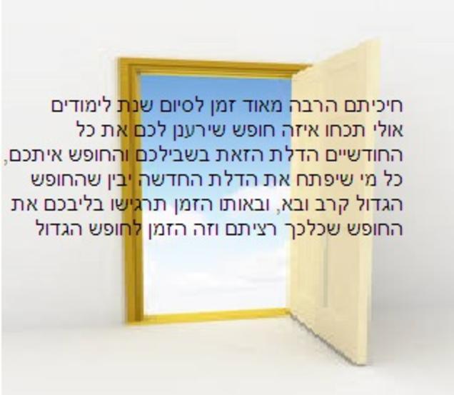 עד כמה מאחד עד עשר אתם אוהבים חופש, אני בעשר כי חופש זה הכי מהנה מאשר ללמוד או לעשות שיעורי בית.