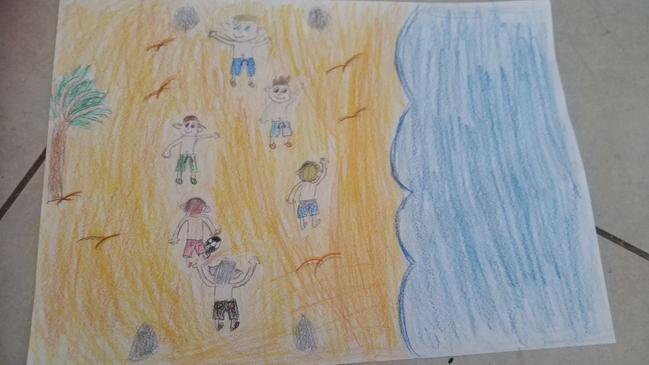 אז היי אני משחק עם חברים שלי כדורגל על חוף הים אני ראיתי שכולם ציירו שהם עם משפחתם אז אני רציתי להיות עם חבריי מקווה לזכות