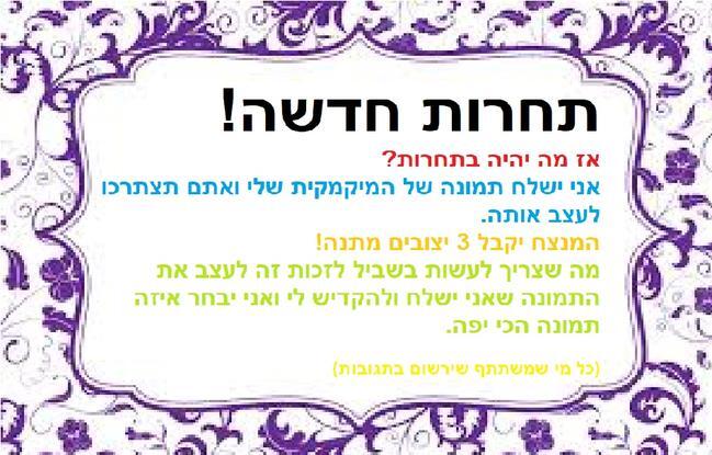 אני בקרוב ישלח תמונה שלי ואתם תעצבו אותה ותקדישו לי.