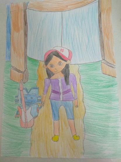 ציירתי את המיקמקית שלי יוצאת מהחנות בגדים, ביחד עם הרובוט של בנק מיקביט. מקווה לזכות!