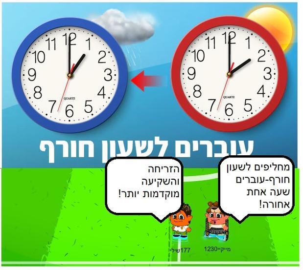 היי, אז היום (28.10) עברנו לשעון חורף! בלילה שהיה הרווחנו שעת שינה, ועכשיו הזריחה והשקיעה יהיו מוקדמות יותר מהשעון קיץ.