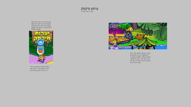גיליון שני לעיתון מיקמק היום הגיליון ידבר על דוכן מסתורי ביער וסגירה מפתיעה אני מקווה כל יום להעלות עיתון בימים בהם לא אוכל או שלא יקרה משהו מענין לא אעלה עיתון