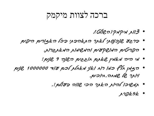 אני העלתי לצוות מיקמק ברכה ואני מקווה לזכות