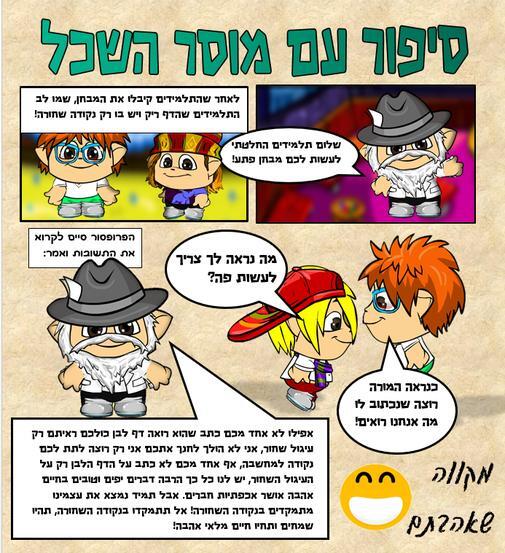 זה בהקשר לדת מלמדים את זה בפרשות השבוע לילדים אך בהחלט כל הכבוד שבחרת להעלות זאת כקומיקס עם מוסר השכל |