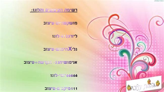 **מזכירה לאלו שאין להם תמונות לעיצובים לשלוח לי כהקדשה תמונה שלו לעיצובים.