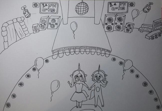 טוב אז קודם כל והכי חשוב, היצירה! ציירתי את המיקמק שלי בתחפושת זוגית, כי מה יותר כיף מזה?! ואם כבר מדברים על כיף, מה יותר כיף מלהתחפש ליוניקורן? אז המיקמק שלי וחברתו התחפשו ביחד לשני יוניקורנים! והם הלכו ביחד למסיבת המיק פורים בקלאב. השקעתי מלא זמן ואנרגיות על הציור הזה! ואני ממש מקווה שאני אזכה!