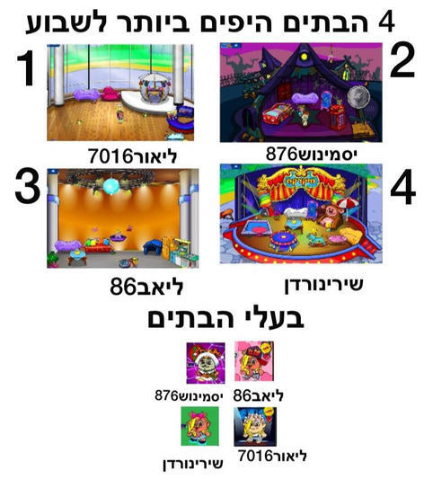 היי חברה! הבטחתי שיעלה היום וקיימתי. לקח לי מלא זמן להכין את הכל אבל הצלחתי! אז רשימת המשתתפים שלנו להשבוע: -ליאור7016 -ליאב86 -שירינורדן -יסמינוש876 כתבו לנו בתגובות לפי מספרי הבתים איזה בית לדעתכם הכי יפה וביום ראשון יגיעו התוצאות של כל ההצבעות שלכם! כדאי לכם להצביע שווה את כל המאמצים שלנו! ותודה רבה רבה רבהההה לחןמיק שהקדישה לי יצירה בקהילה שלה איזה כייייף!!!!! חן את כבר הופכת לפינה שבועית מרוב שאת פעילה וכל כך נחמדה לכולם❤️