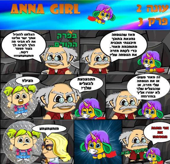 הייי מיקמקים! מקווה מאוד ש-♥ את הפרק! השקעתי בו הרבה..:) אני אשמח עם תכתבו את דעתכם בתגובות! הסבר על הקומיקס: אנטימינימיק הצליח להוביל את אנה יש למערה שלו! הוא אומר שהוא תכנן מזימה כדי לקחת חזרה את הנוסחה שלו, שנמצאת בתוך אנה ובגלל זה היא גיבורת על.. הוא אומר לאנה - או שהיא מחזירה את הנוסחה או שהוא הורג את זיו הבעלים שלה!!! ואז אנה החליטה- עם מחזירה את הנוסחה ומצילה את זיו!!! איך יקחו ממנה את הנוסחה? האם זיו באמת תשתחרר? האם אנה לא תהיה יותר גיבורת על? -את זה תגלו (אולי) בפרקים הבאים-