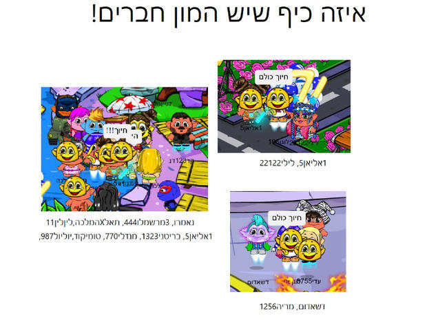 היי חברימים מה מתמקמק? אזז תודה רבה ל1אליאן5, לילי22122, דשאדום, מריה1256, נאמרו, 3מרשמלו444, תאלxהמלכה, ליןלין11, 1אליאן5, בריטני1323, מנדלי770, טומיקוד, יוליול987 שהצטלמו איתי! היה ממש כיף להצטלם עם כולם!!!!! את היצירה הזאת אני לא אקדיש לאף אחד כי אין מספיק מקום בהקדשות לכולם אבל לכל אחד תעלה יצירה אישית ובה יהיו ההקדשות שלכם! ביוש!