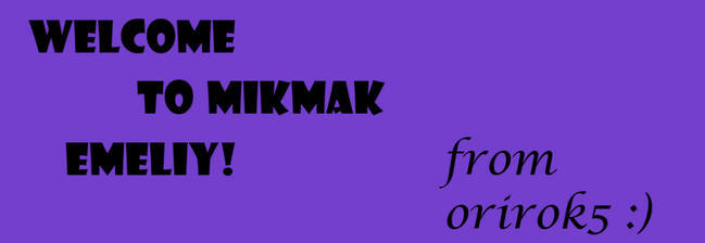welcome to mikmak Emeliy! i hope you get along ! and have fun on mikmak and isreal! welcome to mikmak family! XD and i'm orirok5! XD have a nice day!