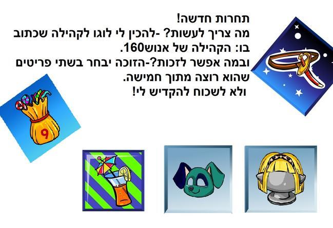 אז היי חברים! אז כמו שאתם רואים ביצירה אני עושה תחרות! מקווה שהרבה ישתתפו כי זה התחרות הראשונה שלי. אז כל מה שצריך לעשות זה להכין לי לוגו שכתוב בו: הקהילה של אנוש160! (לא חייב סימן קריאה) ולהקדיש לי! הזוכה יבחר שני פריטים או אפילו שלוש!מתוך חמש שאני אביא לו! אז מה אתם אומרים? שווה להשתתף! ביי!