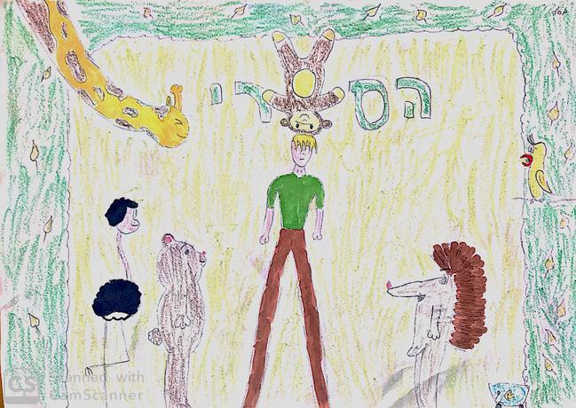 עכשיו על אמת: לציור הזה עשיתי כמה גרסאות, וביקשתי מבני משפחתי שיגידו מה הכי טוב. הם בחרו בגרסה שלקחה לי הכי הרבה זמן לצייר: שלוש ימים. אז בהצלחה לכולם ויאללה ביי. נ.ב. השיער של פגי נראה ככה כי הקוף מחץ לו את הבלורית, ופשוט התעצלתי בנוגע לאוזניים.