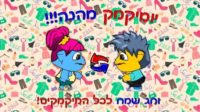 עוד מעט נגמר חופש סוכות... אבל בשביל שנסיים אותו כמו שצריך צוות מיקמק הכינו לנו יומיקמק! ולא סתם - יומיקמק לשלושה ימים!!! כל האפשרויות של מנויים עומדות לרשותכם - אתם יכולים להשלים הישגים שצריך בשבילם מנוי, לשחק במשחקים למנויים, לעשות החלפות עם חברים, לקנות פריטים מקטלוגים, להסתובב במקומות למנויים ועוד! רק אל תשכחו - בסיום היומיקמק כל הפריטים של המנויים יהפכו לשקופים ולא תוכלו ללבוש אותם - עד למנוי הבא! אז קדימה, למה אתם מחכים? רוצו לבלות ולנצל את היומיקמק! חג שמח ויומיקמק מהנה! |
