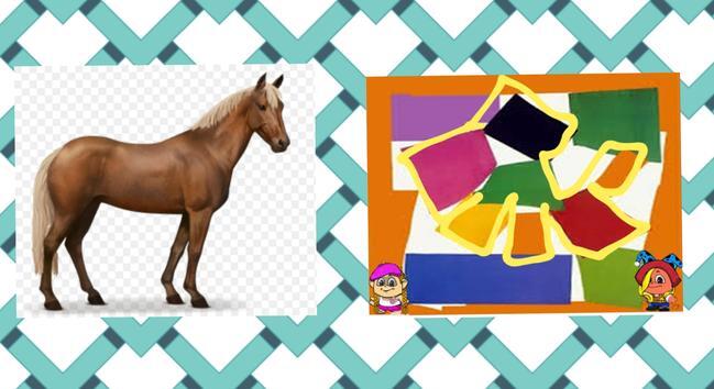 אז אני רואה ביצירה הזאת סוס הראש שלו זה הצורה הורודה הרעמה שלו זה הצורה השחורה הצהוב הכתום והאדום אלה הרגליים שלו והכתום האחר זה הזנב♥️