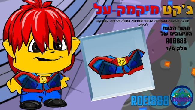 היי! כאן roei888 והיום אני מציג לכם סדרת יצירות מיוחדות מהרגיל, כלומר עיצובים! שוב! אספתי את מיטב העיצובים שלי, שיניתי איפה שצריך ושיפרתי איפה שצריך, תיקנתי ו"שפשפתי" ולדעתי הגעתי לתוצאה האולטימטיבית! ולמה? שמעתי על תחרות מעצב החודש החדשה של צוות מיקמק וממש התפעלתי מהרעיון המצויין הזה. כל אחד שיעצב פריט יוכל לקבל תמורה על ההשקעה הרבה ויותר מזאת, לקבל כבוד רב והפצה של הפריטים בכל רחבי מיקמק, אני כמובן מאוד מתרגש להציג את הפריטים, אז כדאי שאני אסביר: הם כוללים: עיצוב מחודש ומשופר לשיער האלויס הקצר שעיצבתי שיער מיקה קצר שיער האוסקר השחור הקצר חולצת ג'קט מיוחדת בהשראת סופרבוי אז מקווה שתאהבו! אתם מוזמנים לבדוק את ארבעת העיצובים שהכנתי בצורה מפורטת וגדול. ולצוות מיקמק, אני ממש אשמח אם הפעם תתנו לי את ההזדמנות ותאשרו את הפריטים האלה, מאז תחרות המייקאובר אני הצעתי והצעתי כל פעם מחדש, ואני חושב שאני אחד מהראויים לקבל את הפרס האדיר! אני ממליץ לכולכם גם לבקר בקהילה המעולה של נפולאון5, שגם הוא עיצב פריטים מגניבים לכבוד התחרות. ________________________________ היום גם עולה הפרק לפני האחרון לאלויס!(היה אמור לעלות עוד בחמישי, אבל לא הספקתי) הפרק האחרון והחגיגי יעלה בשלישי! ביי ביינתיים
