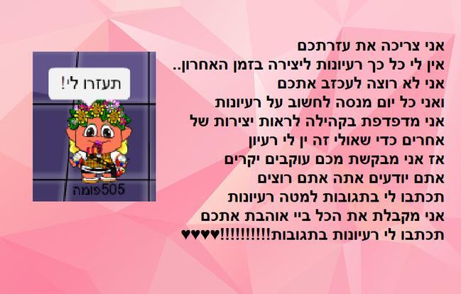הייתי נותנת רעיון אבל אני בעצמי אין רעיונות לקהילה שלי |