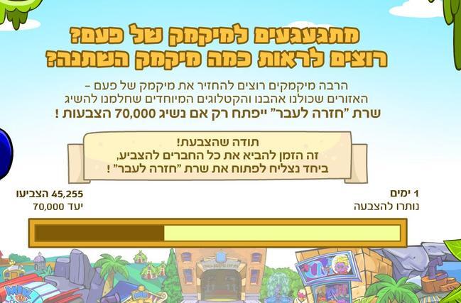 טוב חברים היום נכנסתי למיקמק לבדוק עוד כמה קולות צריך להצבעה,וראיתי שנשאר עוד יום וחייבים להגיע ל- 70000 כדי שהשרת יפתח