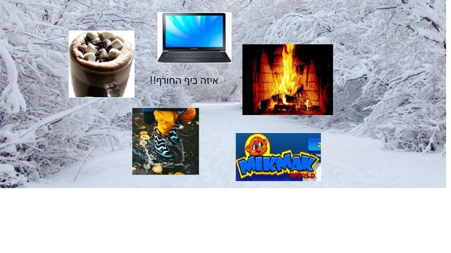 היי חברים החנתי את העבודה לכבוד [תחרות מטורפת לכבוד 200 עוקבים פריטים בתאור] אז כן מה שאני החי האוב לעשות בחורף זה.... לישתות שוקו חם ליקפוץ בשלולייות לשבת ליד האח הבוער לשחר במישחקים על משחים ובטח שבטח לשחק מיקמק!!!!!!! אז כן תאחלו לי בהצלחה תודה כולם!!!!!!!!!!!!!!!!!