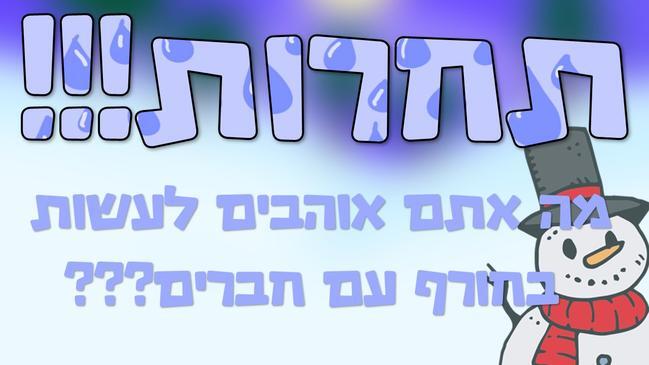 עשיתי הכול חוץ המתמונה אני עוד מעט עושה בבקשה מקום ראשון |