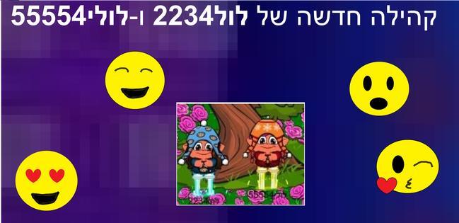 היי לכולם!!!!!!!!!! כרגע מדברת לול2234. רציתי לומר שאני ולולי55554 פתחנו קהילה משותפת! אנחנו ממש מתרגשות!!! אבל זה לא אומר שנפרוש! עכשיו נעבור ל-לולי55554
