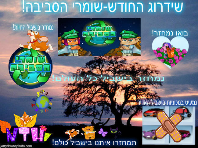שלום לכולם החלטתי להעלות יצירה בנושא שידרוג החודש שהוא לישמור על הסביבה רציתי להיתמקד בנושא הזה זה ממש חשוב לישמור על הסביבה בישביל העולם בישבלנו ובישביל החיות ובישביל העתיד אני בטוחה שכולנו היינו רוצים עולם נקי בלי זיהום! אז.... אני גם החלטתי בבית למחזר פלסיטיקים וזכוכיות ועוד.. אני ישמח שגם אתם תמחזרו תודה! |