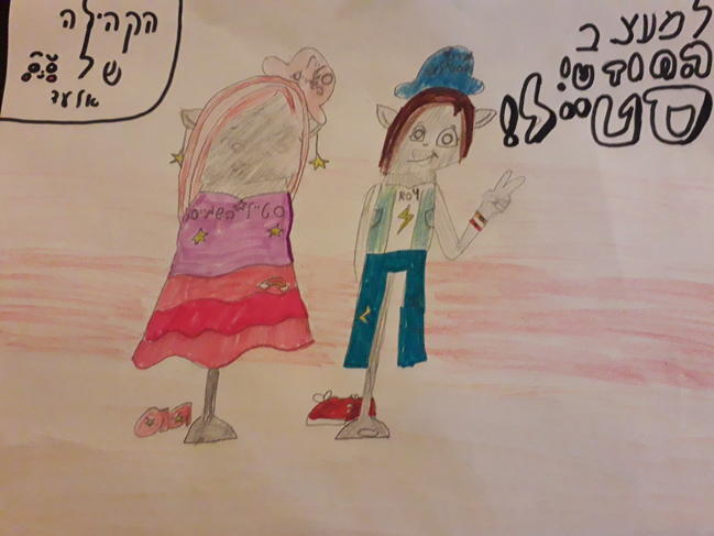 לבנות: *כובע לצד שכתוב עליו סטייל בשמיים. *שיער פסים ורוד ואדום *חולצה סגולה שכתוב עלייה סטייל בשמיים עם כוכבים *חצאית שכבות ורוד ורוד כהה ותג קשת הענן *נעליי עקב אדומות עם ציור כוכבים *עגילי כוכבים מזהב טהור.