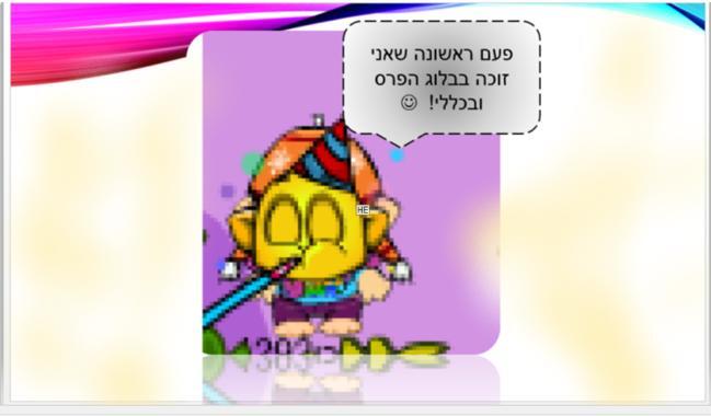 אולה אמיגוס! (המצאתי חדש) אז היום ראיתי בבלוג שעלה שזכיתי! איזה התרגשות! פעם ראשונה! אחר כך שניכנסתי למיקמק ראיתי שיש לי מנוי+שדרוג מיקמפינג! OMG!! ממש התרגשתי ואחריי זה, אמרתי לעצמי:"כול מי שזוכה ביצירה, מעלה לקהילה. ומה איתך? את לא תעלי משהו גם?" חשבתי על זה, ולבסוף החלטתי:"שווה לך לעלות משהו..... מזמן לא העלת!!" אז.. כן... העלתי עכשיו!! אה, יש לי המלצה בישבילכם על ספר מצחיק וכייפי מאוד: ''ג'ינג'ית והפוני האבוד'' מסופר שם, על ילדה בשם גילה שהיא ג'ינג'ית, ובגן התחילו לכנות אותה ג'ינג'ית עד שהשם גילה נשכח. יש לה חברות בשם: מעין, נופר ומיכל. בספר הזה, לקראת חופשת האביב\פסח מיכל יוצאת לשבוע לחופשה בחוות הסוסים. היא מספרת את זה לחברותיה, שדרגת הקינאה שלהן רק עולה. ג'ינג'ית או בשמה הרגיל, גילה, אמורה ללכת לסבתא שלה, שלא ביקרה אותה זמן רב מאוד, אבל מנסה לשכנע את ההורים שלה לתת לה לנסוע לחוות הסוסים ההורים שלה לא מאשרים אז היא אפילו מנסה להתקשר לסבתא ולהסביר לה הכל. לבסוף סבתא של ג'ינג'ית מאשרת אך בתנאי 1: ג'ינג'ית יכולה לנסוע לחווה אבל חייבת לבקר את סבתא בקיץ. לג'ינג'ית עלה חיוך.
