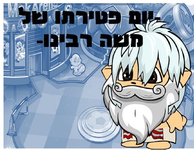 שלום מרקים! אז כפי שאתם רואים בכותרת וביצירה, היום יום פטירות משה רבינו, איש מיוחד וחשוב מעם ישראל. זוכרים רק איך זה התחיל? בני ישראל במצרים, והמצרים מעבדים אותם. לאחר מכן נולד ילד שהביא אור!! ושמו משה, יוכבד ידעה שהיא מוכרחת לעשות איתו משהו אחרת המצרים יהרגו אותו, אז ה' שלח אליה רעיון: היא תשים אותו בתיבה, והנה לו. והילד הקטן הזה החל להיות מנהיג! ידע להבחין בין כסף לאש, דיבר עם ה' בסנה בוער, מצא אישה במדין, 10 המכות, יצאו ממצרים, עברו למדבר, התכוננו ללכת לארץ כנען(ישראל), בנ''י ישראל נכנסים לכנען ומשה נשאר במדבר,