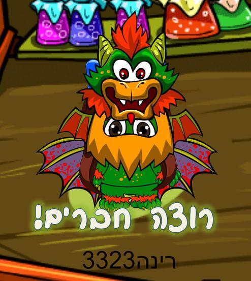 היייייייייייייייייייייייייי אז זה לא כאילו אני בודדה (אני לא) ולא כאילו אני מרגישה בודדה(^_^) ________________________________________ טוב זה פשוטטט שהכפר מיתמלא וזה טוב! אפילו מיצויןןןןןן אבלללל הוא מיתמלא במיקמקים שאני לא מקירהההה ובאלי להכיר אותם! אז עם אתם רואים דרקון ירוק וחמוד אזאז אזזזזזז אשמח לדבר איתכם! (אל תידעגו אני דרקונית מאולפת אני לא נושכת...) אז אשמח ממשששששששש להכיר את כולכםםם מי יודע אולי יש לנו הרבההההה במשותף? חיחי טוב פורים שמיחחחחחחחחחח (האיתי חייבת ליכתוב "שמיח" כי אחותי כתבה את זה פעם ופשוט האיתי חייבת ליכתוב את זה מתישהו....XDDD) שוב פורים שמיחחחחחחחחחחחחחח בקרוב תעלה יצירה של (בעז"ה) שראיתי שכמה מיקמקים עושים ורציתי גם... תנחשו מזה? זה יהיה די קשה אבל למה לא לנסותXDD פורים שמיחחחחחחחחח בייייייייייייייייייייייייייייייייייייייייייייייייייייייייייייייי