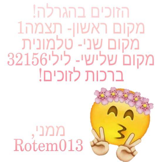 יואו הכי תודה אני ממש מיתרגש זכיתי מקום ראשון!! |