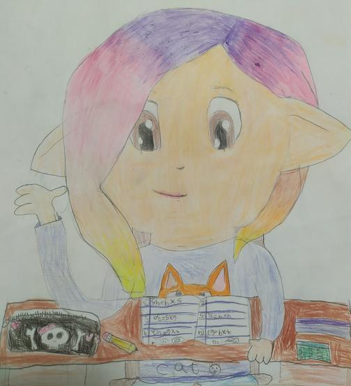 לפי הציור רואים שאני עושה שיעורי בית (וזה בעצם בזמן הקורונה). זאת גם הסיבה שאני לא מעלה יצירות בקהילה (כי כל יום נותנים לנו שיעורי בית) .
