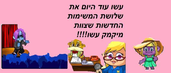 אז היי סקיטלס! היום עשיתי יצירת תזכור למקרה שלא ראיתם את המה חדש צוות מיקמק הוסיפו עוד משימה לשני המשימות שלנו! אחת של ראש העיר עם הטיפים למצבנו, אחד עם שכחתי איך קוראים לה חח עם דוכן השייקים והבית של תאילנד והמשימה הבאה של ג'ימבו שעושה סטנדאפ ואין לי מושג מה מקבלים כי אחרי היצירה הזאת אני הולכת לעשות את המשימה הזאת! XD טוב אז ביוש סקטילס!!