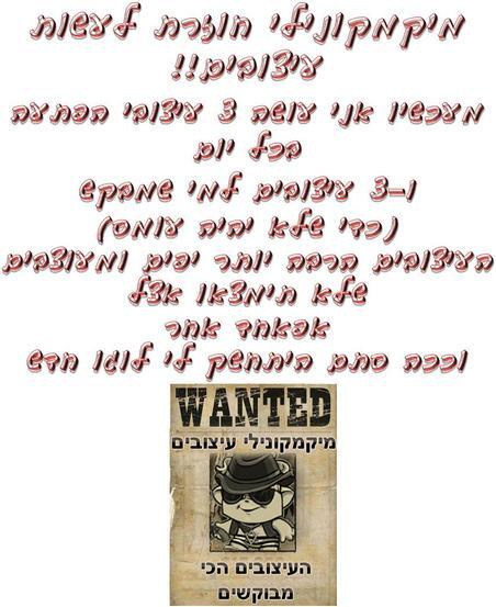 מיקמקונילי תעשי לי גם עיצוב פליז אים כן אז נפגש ביום חמישי שזה מחר בשרת אבוקדו בקרחת היער מחכה ומקווה שנפגש ותעשי לי עיצוב בס"ד |
