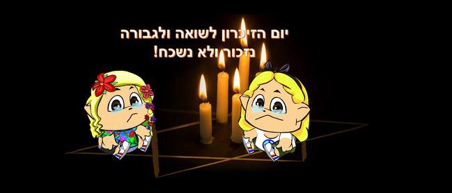 טוב אז היוש סקיטלס! כן אמרתי שאני אלך לאיזה שבוע אבל חזרתי כי באמת חשבתי עליכם וראיתי את כל התגובות המרגשות ואמרתי טוב נו מה כבר יכול להיות! אני עוד לא יודעת אם נחגוג את היום הולדת שלי או לא הכל תלוי בכם אני לא רוצה שזה עוד פעם יקרה! אז בבקשה אני אעשה יצירה מפורטת עם הכל!!!! כולל הכל!!! טוב רז הכנתי יצירה ליום הזיכרון לשואה ולגבורה, אז מחר מציינים את יום הזיכרון, והכנתי את היצירה הזאת כדי שלא תשכחו, עכשיו אנחנו עם של מפונקים ולפני הרבה שנים הרבה נאצים רצו להרוג אותנו, והצליחו! אז עכשיו אנחנו צריכים לכבד את כל מה שיש לנו ולומר תודה שיש לנו בית, חברים, וחיים! מה שלרוב היהודים לא היה בתקופה הזאת של השואה! אז אני מקווה שהבנתם את המסר החשוב הזה, טוב אז ביי סקיטלססססס