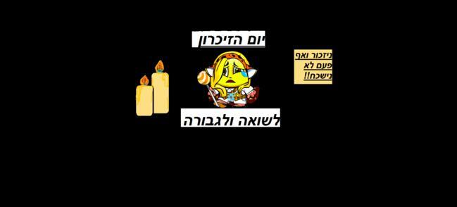 מה שלומכם?? אני מעלה המון! המון!! המון!!! יצירות והם לא נישלחות לי לקהילה אז אם לא ראיתם יצירות שלי זה בגלל זה!! היום בבוקר יהיה אזעקה זכר ליום השואה הנורא שהרג מיליוני יהודים רק מפני שהם יהודים לא משנה אם הם שומרי תורה ומצוות או לא!! בואו ואספר לכם טיפה על מה קרה למשפחתי בשואה!! סבא של סבא שלי מצד האבא היה רב גדול בפולין ונהרג על קידוש השם כשניתפס בערב יום שישי כשהוא עושה סעודת שבת לו היה בן שהוא אבא של סבא שלי הוא אצליח להימלט מהשואה אם רעייתו והם הגיעו לרוסיה ושם ילדו את שני האחים הגדולים של סבי ולאחר השואה הם נסעו חזרה לפולין והולידו שם את סבי ואחיו הקטן !! סבא עלה לארץ והיתחתן אם סבתי היא האומנם נולדה בארץ אך גם משפחתה סבלה רבות מידי הנאצים ימך שמם אמן!! לפי מה שידוע לי כל שאר המשפחה נהרגה בשואה חוץ מאלה שהצליחו לעבור את השואה !! בכל דור מאימים עלינו אך הקדוש ברוך הוא מצילנו מידם איזה היסטוריה יש לעם ישראל אני אישית לא מבינה איך שרדנו את הכל!! הכול בזכות הקדוש ברוך הוא שעוזר ושומעה לנו תמיד בעת צרה זכות גדולה לנו שאנו יהודים!!! אברנו את מיצרים אברנו שואה ועוד הרבה מיקרים בדרך אל תדאגו נעבור גם את הקורונה!! נהיה חזקים ולא ניתן לשום דבר לעצור אותנו!! הצפירה בעוד כמה דקות אז האלץ לסיים!! ניתראה בפעם הבאה!! טאטונה!!