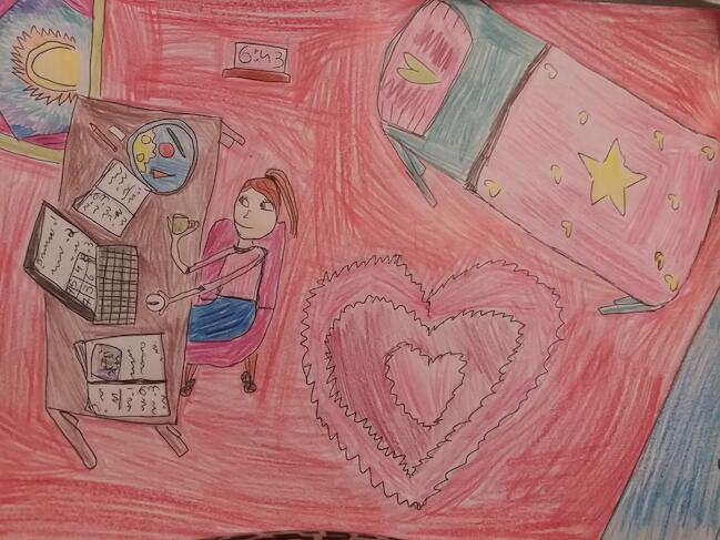 היי מריונים מה קורה?( כן, סוף סוף המצאתי משפט פתיחה) היום ציירתי לתחרות:"המיקמק שלי מתמיד בלימודים מהבית- למידה מרחוק" את המיקמקית שלי קמה ב6:43 כדי להספיק לעשות את כל העבודות שלה, ותוך כדיי אוכלת את הארוחת בוקר שלה.( לקחתי דוגמה מאחותי חחחח) ממש ממש ממש ממש ממש השקעתי וישמח אותי עד השמיים אם תעשו לייק ותגובה. נגיע לתמונת היום? ואוליי אני יזקה בפעם הראשונה בחיים שלי במיקשימה? אוהבת אתכם, מאוד מאוד, מריונים. נתראה ביצירה הבאה!!!