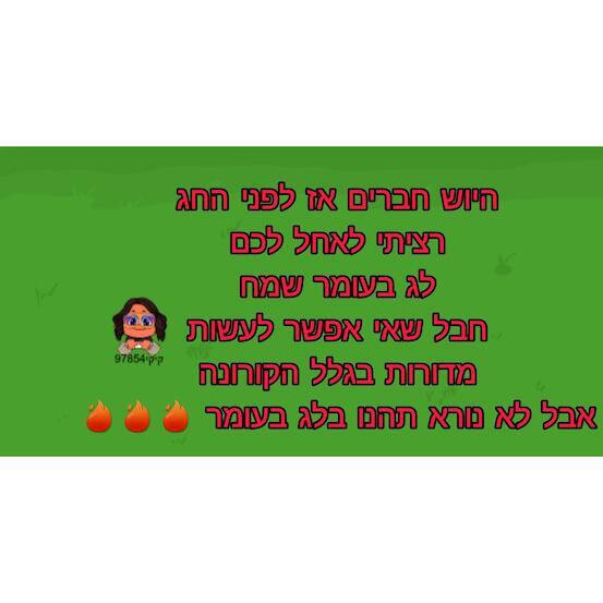 היוש חברים אז רציתי לאחל לכם לג בעומר שמח גם עם אנחנו לא חוגגים במדורות