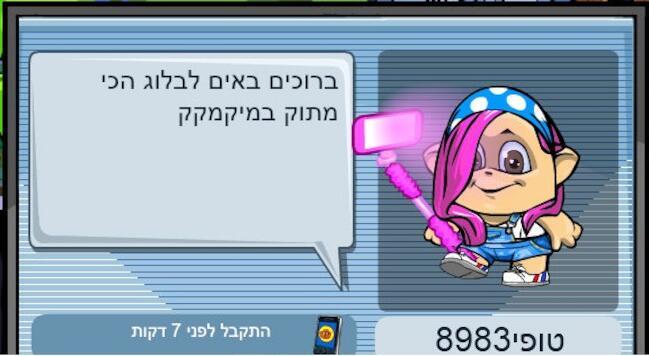 היוש טופיפים שליי אז החלטתי לפתוח בלוג, שיעסוק בכל הדברים הכי חמים במיקמק... נגיד חשבתי על בדיחה, רוצים לשמוע? שני מיקמקים הולכים, הולכים, הולכים, הולכים, בום שניצל וירטואלי! אז יהיו פה בדיחות (מצחיקות כן?), סיפורים ומלא מלא דיבורים, תעקבו כדי להישאר מעודכנים. אה, וטיפ קטן ממני: טופי על האש הרבה יותר טעים ממרשמלו... עד לפעם הבאה! חג שמח!