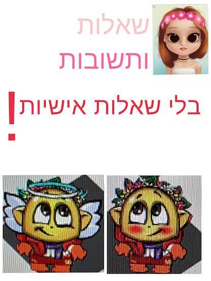 היי כולם, מה קורה?-מקווה שהכל בסדר, כי איתי מעולה. אז זאת יצירה של: שאלות ותשובות, אני יעלה את התשובות ביום ראשון אז תמהרו לשאול שאלות. אני מבקשת לא לרשום שאלות אישיות לדוגמא: מה הוא השם שלי, ובת כמה אני ואיזה כיתה אני. טוב אז תמהרו לכתוב שאלות ונתראה יום ראשון עם התשובות.